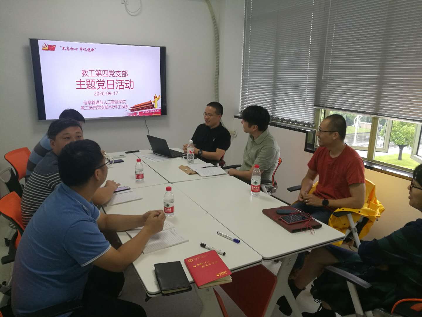 9月17日,老金沙9170登录入口教工第四党支部组织全体党员教师在9301A开展“开学第一课”主题党日活动,认真学习省委书记袁家军同志在省委党校2020年秋季开学典礼上的讲话精神。