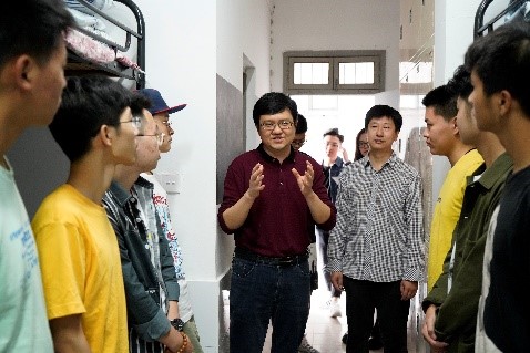10月11日上午,院党委书记徐奇伟、院党委副书记田聪、院团委书记毛立晨以及新生辅导员洪宝华带领新生班导们到生活园区走访了新生寝室,为新生送上开学祝福,同时提醒新生注意防盗防骗等各类安全问题以及做好疫情防控工作,并就接下来一段时间的校、院安排做了介绍。