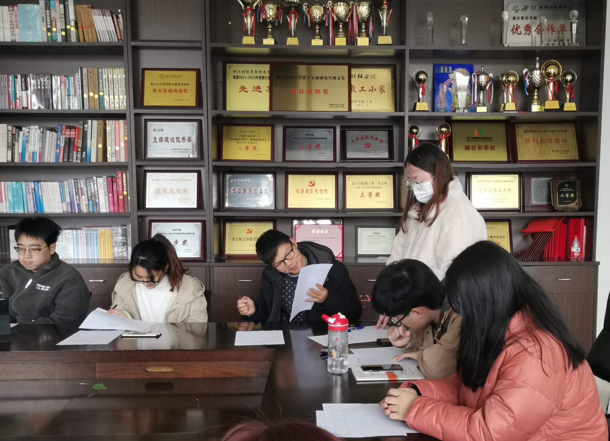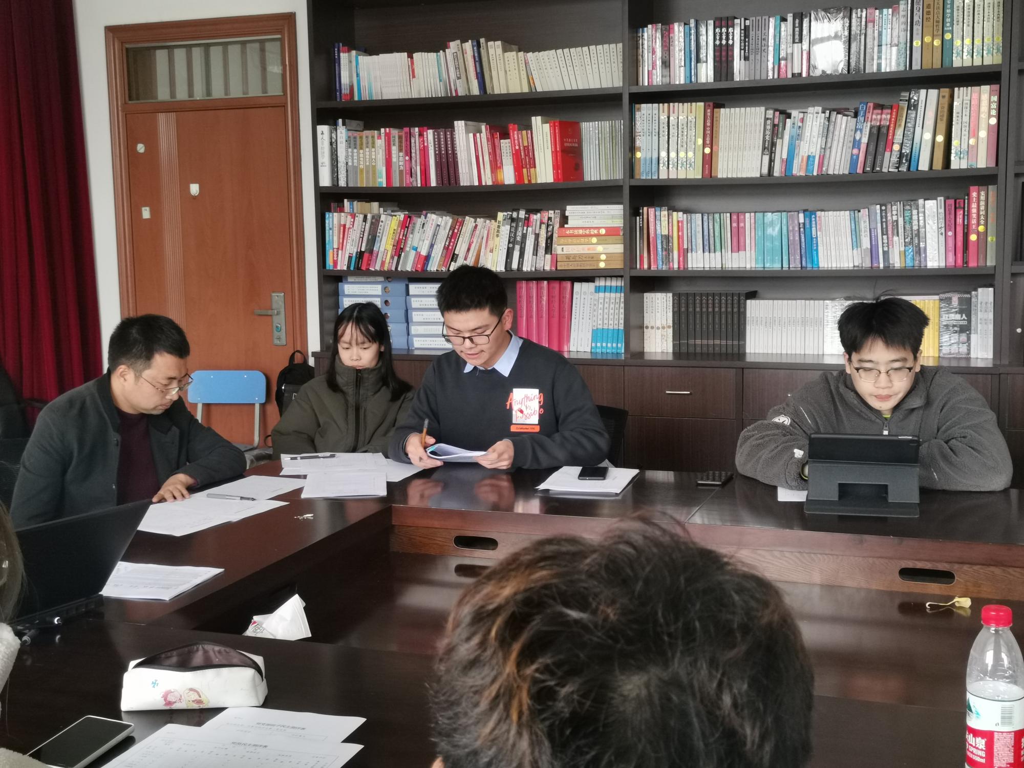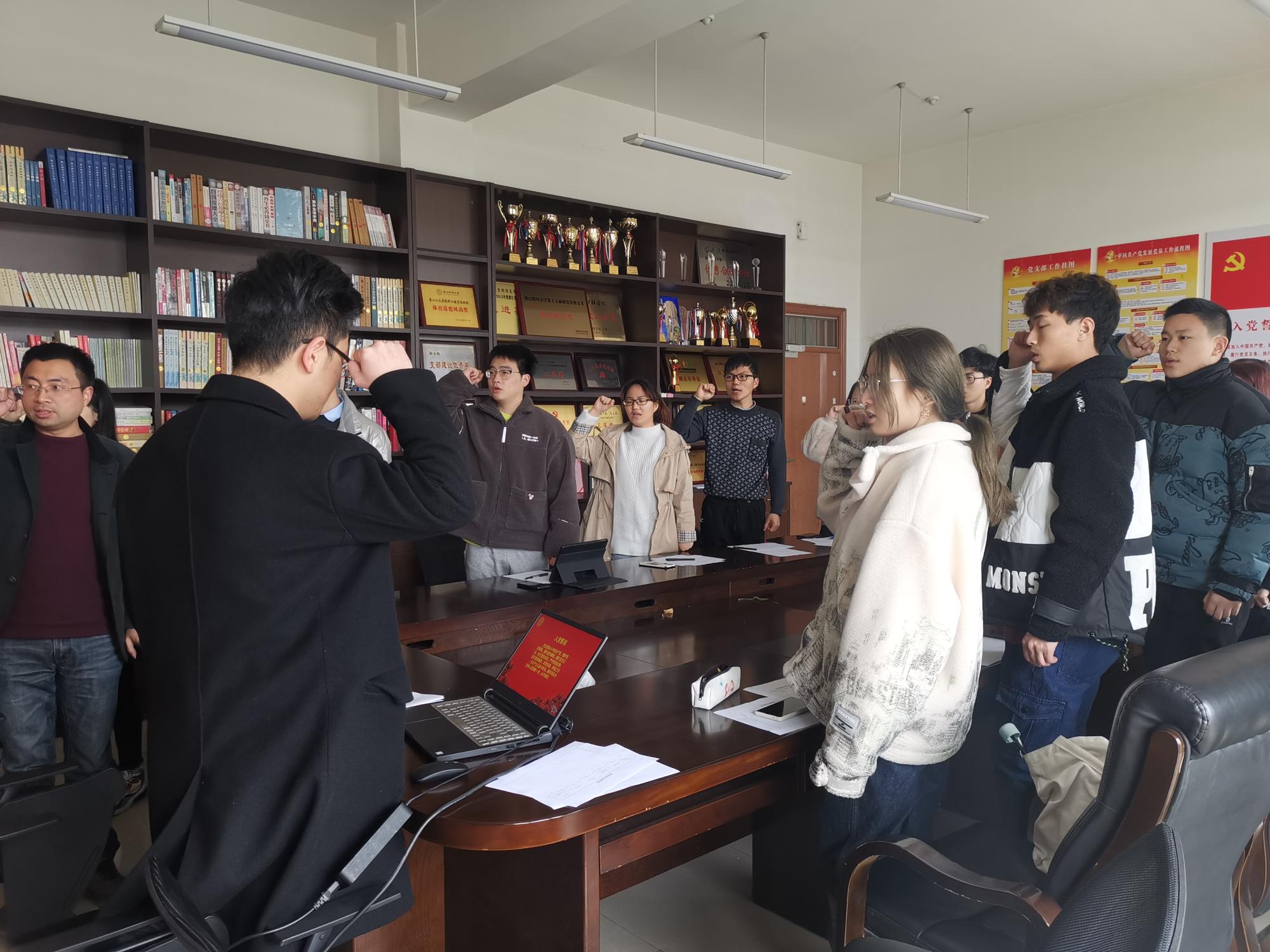 会议起始,支部书记洪宝华老师带领大家庄严地举起右手重温入党誓词,之后组织大家开展了民主评议党员工作。各党员对照党员标准,认真总结自己过去一年在思想、工作、学习、纪律、作风等方面的情况,部分大四党员因在外实习无法参会,也通过线上视频会议形式对自己的情况进行了总结与陈述。
