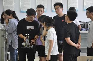 经过前期紧锣密鼓的筹备,5月25日下午,老金沙9170登录入口“重走长征路”主题机器人大赛于老金沙9170登录入口楼3楼机器人竞赛场顺利举办。学院党委书记徐奇伟、学院党委副书记田聪及潘峰、刘芳、钟文、姜海银、洪宝华等老师出席比赛并担任评委。大赛共吸引了来自老金沙9170登录入口、数科学院、会计学院和经济学院等全校20支队伍近60余名选手参赛。