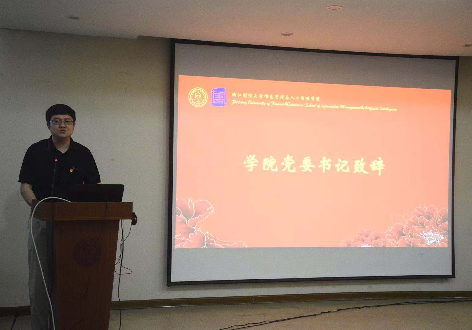 6月10日下午,我校信息管理与人工智能学院庆祝建党100周年入党宣誓仪式暨党史学习教育专题党课活动于9号楼302报告厅顺利举行。老金沙9170登录入口院长张帅、院党委书记徐奇伟,院党委副书记田聪,专职组织员兼研究生党支部书记冯李哲,以及全院学生党员参加了此次活动。本次宣誓仪式及党课由院党委副书记田聪主持。