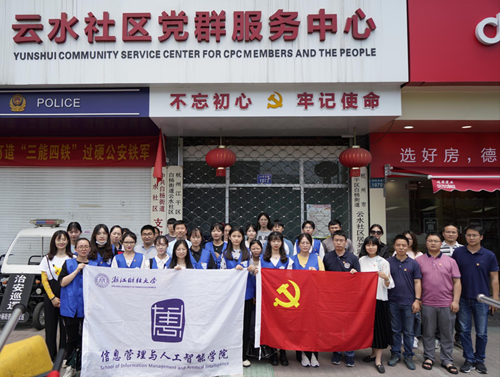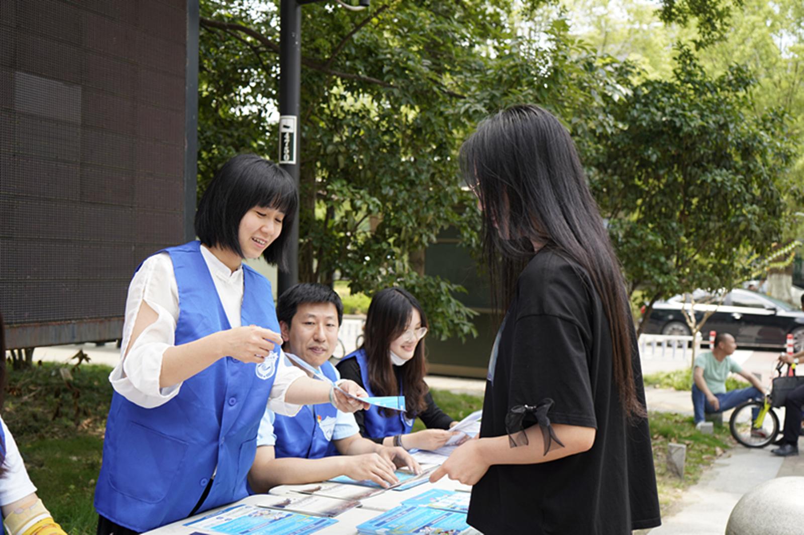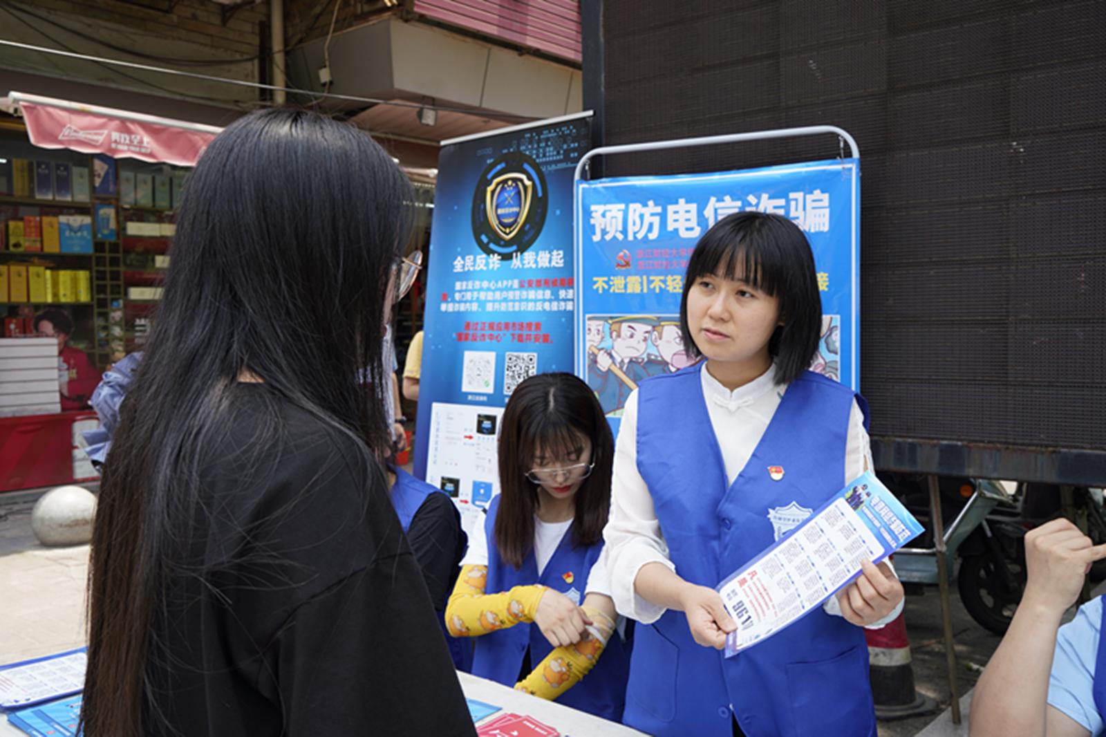 为响应国家反诈中心的号召,进一步提升周边居民防诈骗意识,6月8日中午,信息管理与人工智能学院教工第一党支部联合学生第一党支部、学生第三党支部开展以“你我同心,反诈同行”为主题的防诈骗宣传主题党日活动,组织师生党员到金沙学府社区开展防诈骗宣传活动。