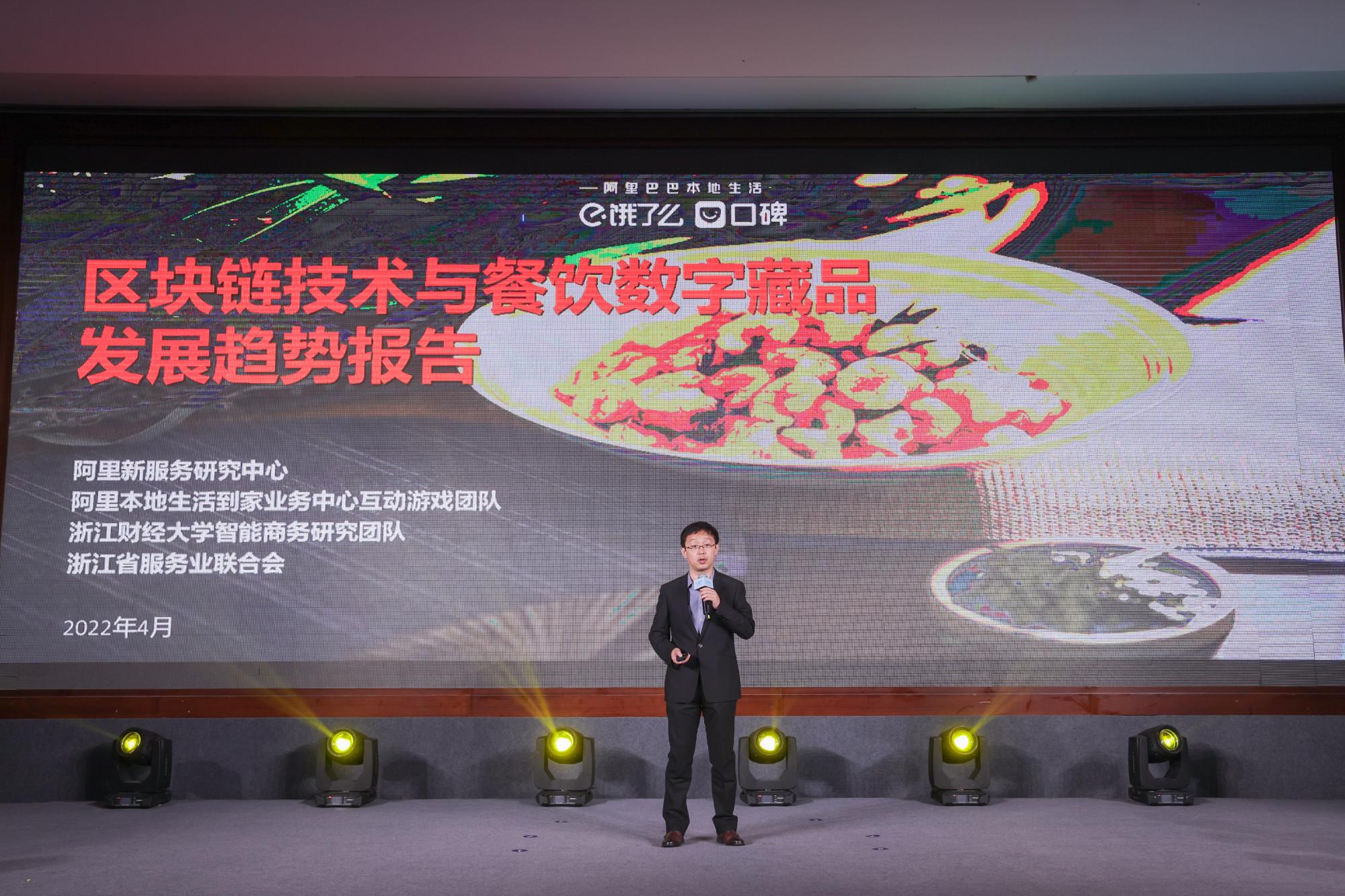 在本次发布会上,阿里新服务研究中心携手阿里本地生活到家业务中心互动游戏团队、我校智能商务研究团队、浙江省服务业联合会共同发布《区块链技术与餐饮数字藏品发展趋势报告》,并由我校电子商务系王鲁博士在发布会上做主题报告。
