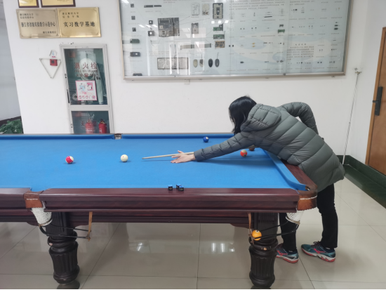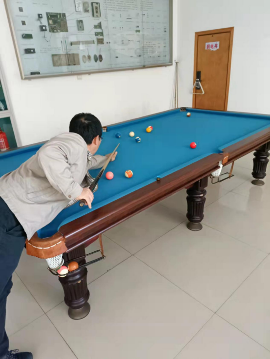 此次比赛分为初赛和决赛进行比赛,参赛教师首先进行小组赛选拔,然后小组前两名进入决赛进行最后比拼。比赛过程中老师们以饱满的热情和轻松的心态参与,一张一弛彰显绅士风范,一动一静尽显王者风采,精彩的球技引来观众的阵阵掌声。整个台球桌上充满了对台球炽热的斗气,充满了对比赛高昂的激情。