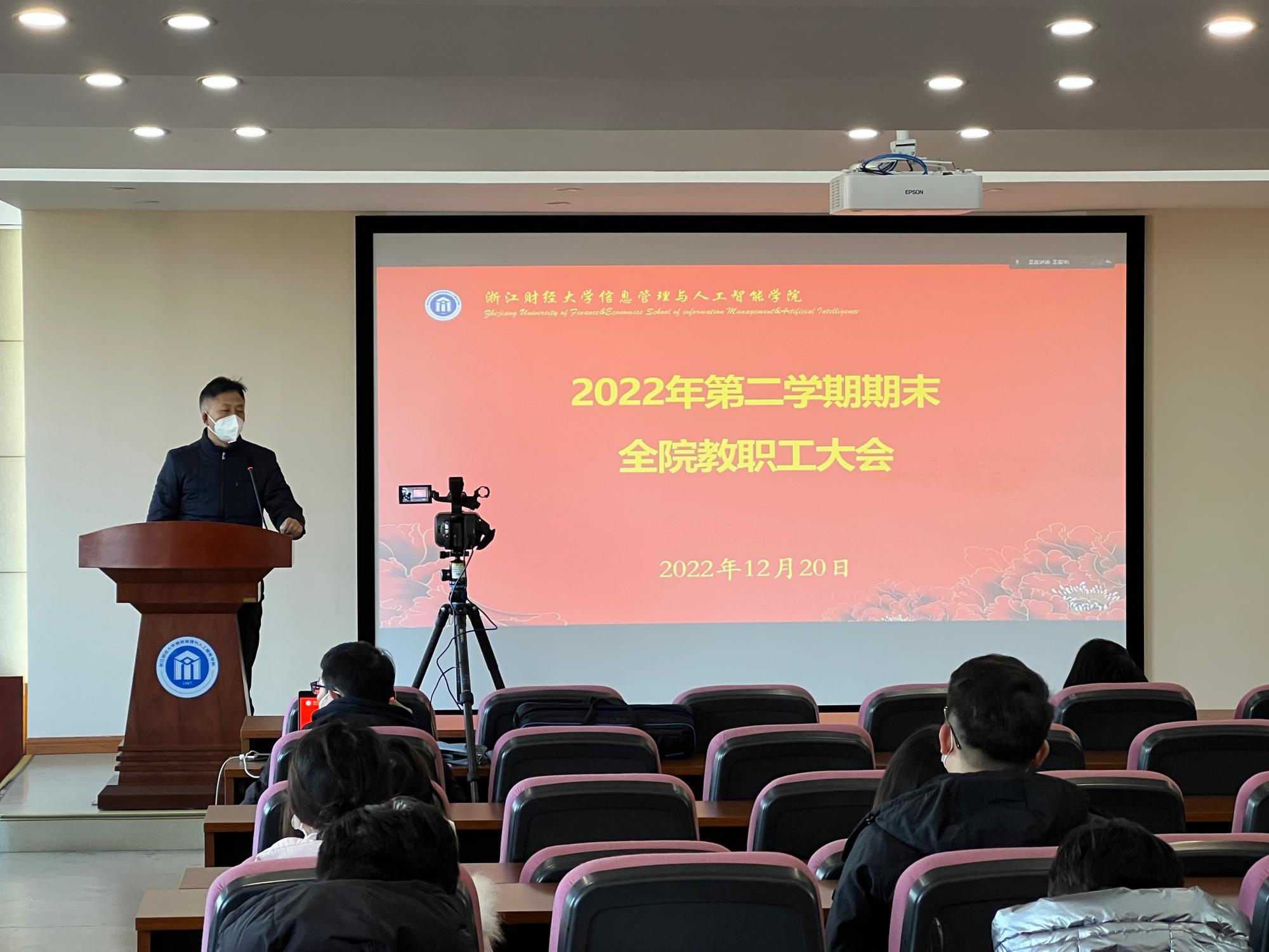 12月20日下午,我院在9-302组织召开2022学年期末教职工集中大会,根据学校疫情防控要求,学院全体教职工通过线上线下两种方式参加了此次大会。