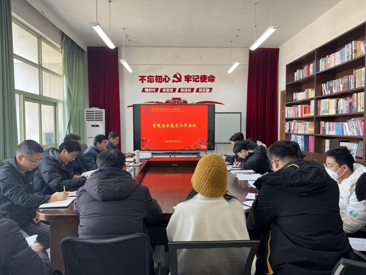 2月16日,老金沙9170登录入口召开校园安全稳定工作会议,会议由学院党委书记徐奇伟主持,院长张帅、党委副书记田聪、学院全体行政管理教师出席会议。