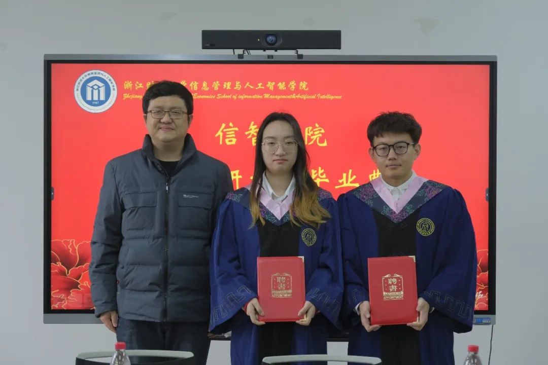 会上,隆清琦副院长和张帅院长分别为2023届我校优秀毕业生、2023届浙江省优秀毕业生颁发荣誉证书,徐奇伟书记为2023届研究生校友联络员颁发聘书。