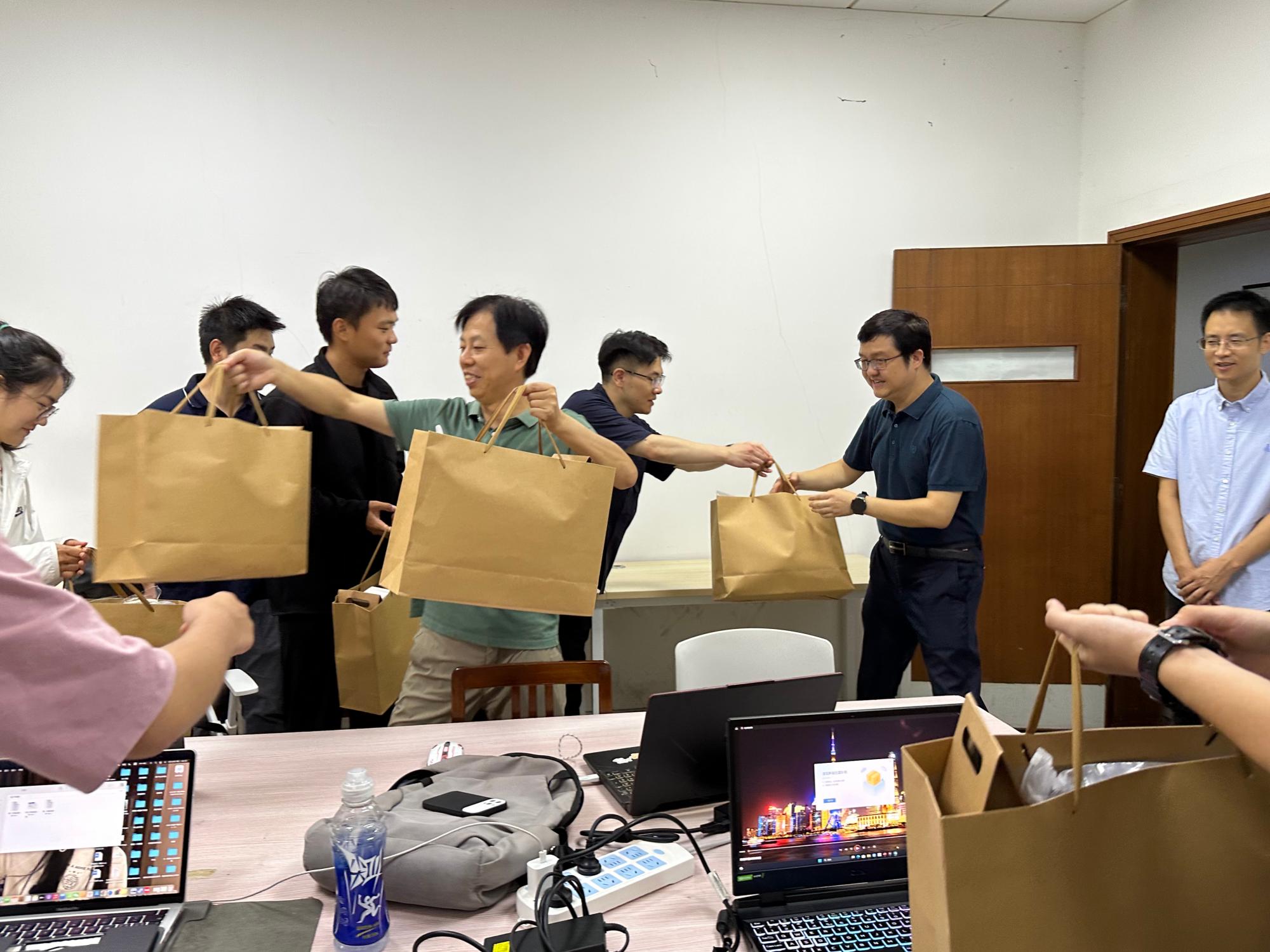 随后,老师们为竞赛团队发放了中秋慰问大礼包,承载了学院对队员们满满的祝福,体现了院系领导和老师们对参加科创竞赛同学们的关怀,和对我院学生科研竞赛、创新创业工作一如既往的高度重视,更让同学们备感温暖。老师同学们畅谈交流,聊着工作中的点滴和团队的梦想,备赛室欢声笑语,气氛温馨而热烈。