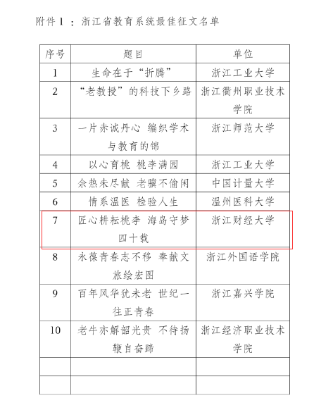 近日,浙江省教育厅关工委公布2023年“读懂中国"活动入选作品情况,我院“寻迹桑梓,‘青’听五老”实践团的作品《守望海岛教育的“摆渡人”》、《匠心耕耘育桃李 海岛守梦四十载》分别入选省教育厅2023年“读懂中国”优秀微视频、最佳征文。