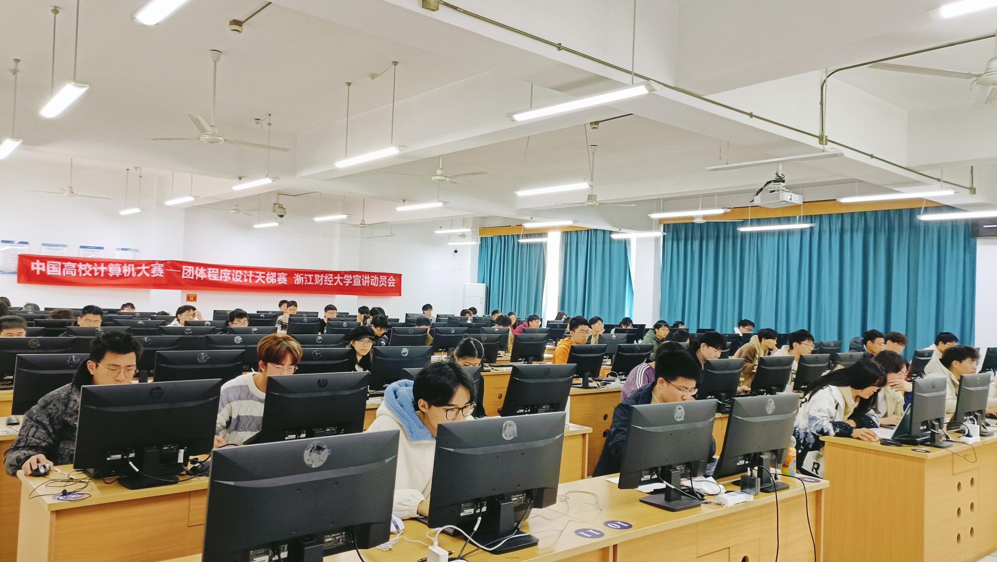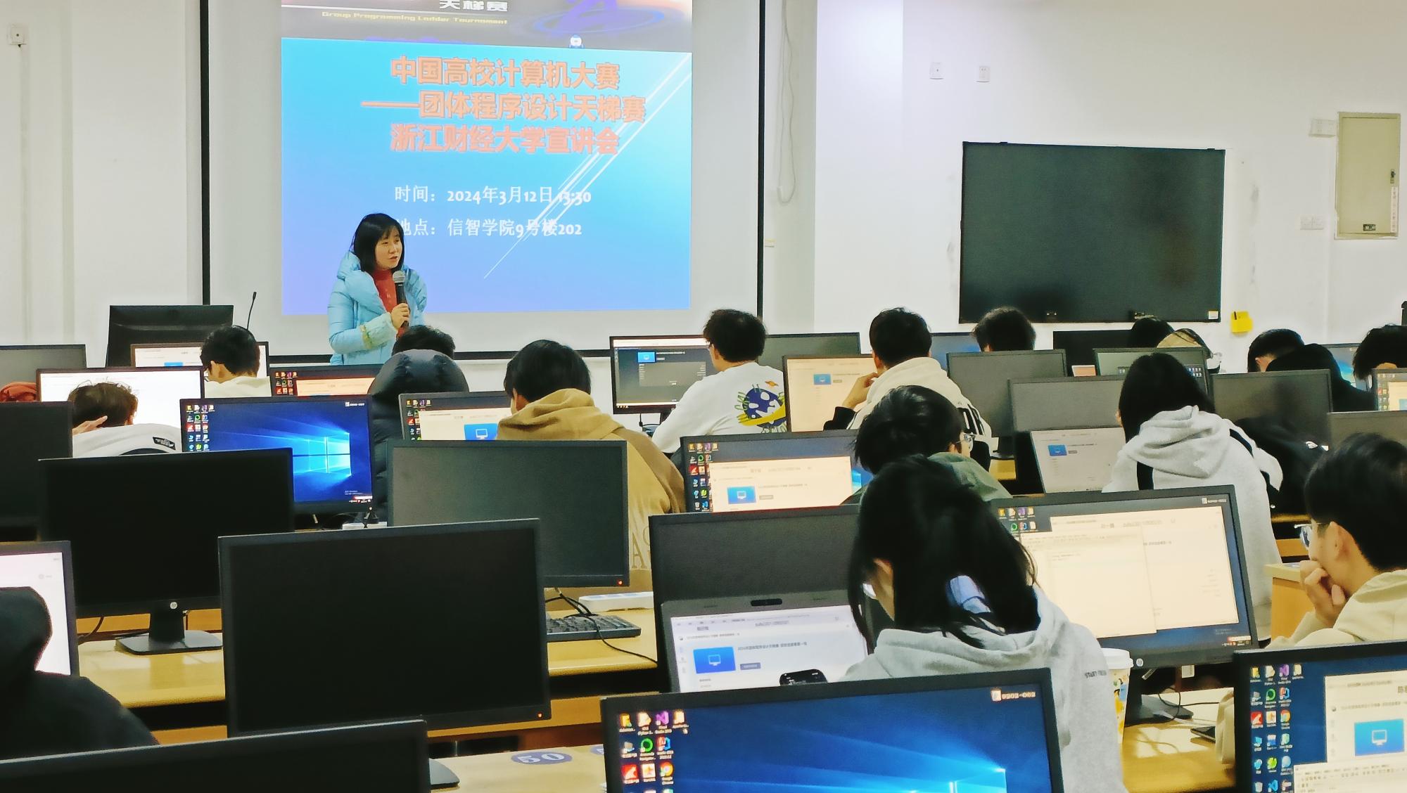 为了培养大学生的创新思维和运用计算机分析问题、解决问题的能力,提高学生的计算机应用水平,丰富校园科技活动,我院于2024年3月12日下午在9202召开了2024“中国高校计算机大赛——团体程序设计天梯赛”我校宣讲动员会。来自老金沙9170登录入口信息管理与信息系统、电子商务、人工智能、软件工程四个专业的近百名同学参加了本次宣讲动员会,现场气氛热烈,座无虚席。