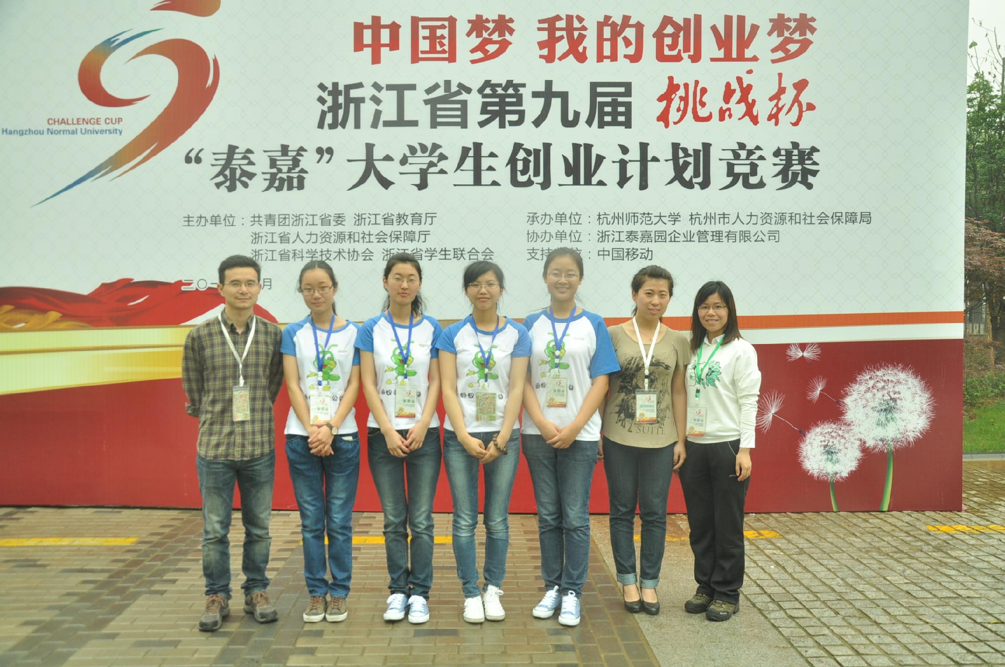 5月16日-18日,由共青团浙江省委、浙江省教育厅、浙江省人力资源和社会保障厅、浙江省科学技术协会、浙江省学生联合会主办,由杭州师范大学,杭州市人力资源和社会保障局承办的2014浙江省第九届挑战杯“泰嘉”大学生创业计划竞赛刚刚落下帷幕,由陈远高老师指导,并由李芸、袁慧莉、童燕燕、净远、韩欣谕、董淑娟、徐欢等7名同学组成的“蚂蚁潮微公益”团队,经过紧张激烈的专家评审和现场答辩,凭借优异的表现,一举摘得浙江省第九届“挑战杯”大学生创业计划竞赛省一等奖,为学院争得了宝贵荣誉,这也是自2010年以来,我院学子在该项赛事中取得的最好成绩。