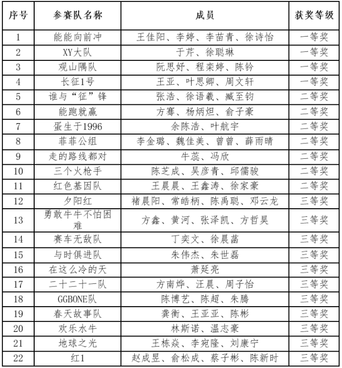 2023年 “移动杯”我校第三届新时代“重走长征路”大学生机器人竞赛已圆满结束,本次比赛共有39组队伍报名,实际参赛38组,参赛人员112人。大赛共评出一等奖4项、二等奖7项、三等奖11项,现予以公示: