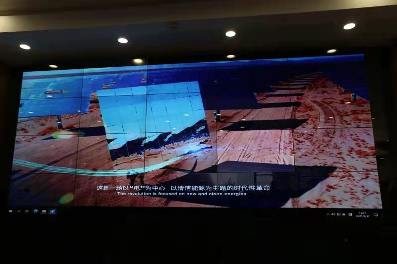 在放映厅里,工作人员展示了正泰新能源的宣传片:正泰新能源国内电站涉及到从工商业分布式屋顶光伏电站、大中型地面光伏电站、农渔光互补地面电站到居民屋顶分布式光伏电站等各个领域。除了传统光伏领域,正泰新能源还布局了储能、配网售电、微电网、多能互补等综合能源的投资建设,致力于为客户提供综合能源解决方案。