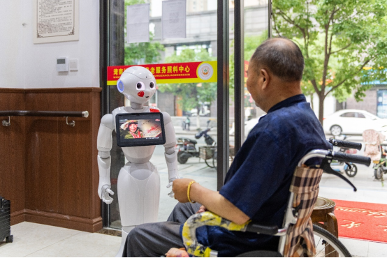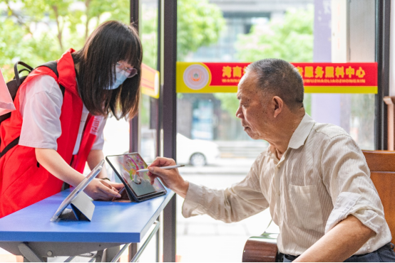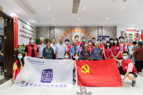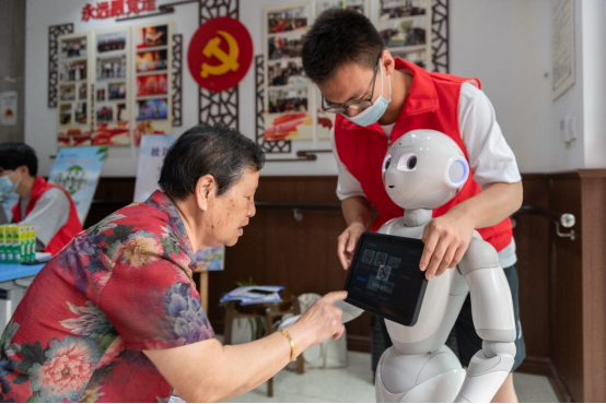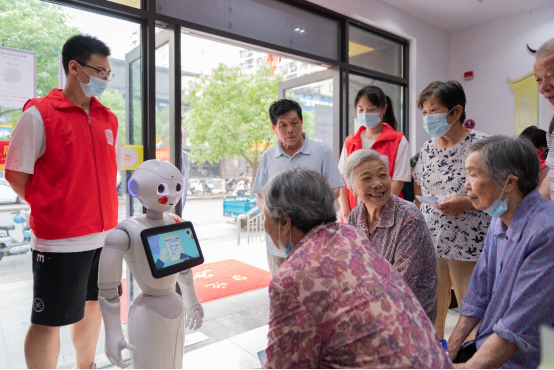 2021年6月17日,老金沙9170登录入口学生第四党支部党员走进湾南社区养老服务照料中心开展志愿服务活动。通过舞动机器人、唱响红歌、即刻出片、动态简笔画等带有科技色彩的游戏活动让社区老人搭上数字时代的便车,体验科技成果,享受智慧生活。