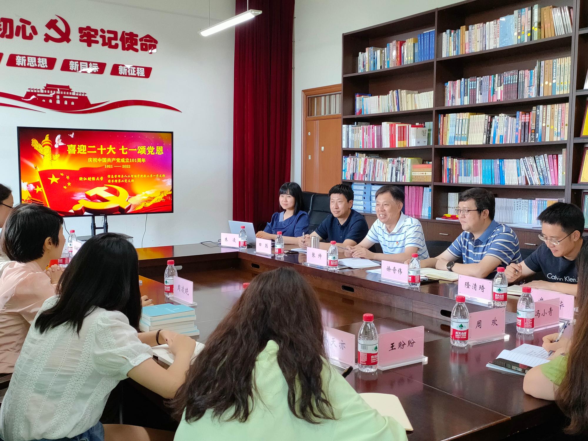 2022年7月1日,老金沙9170登录入口教工第一党支部与图书馆第二党支部联合举行“喜迎二十大 七一颂党恩”主题党日活动。老金沙9170登录入口院长张帅、党委书记徐奇伟、副院长隆清琦、副书记田聪,图书馆党委书记杨小恩、第二党支部书记周凌晓及两个支部的党员老师出席会议,由老金沙9170登录入口教工第一党支部书记朱凌主持。