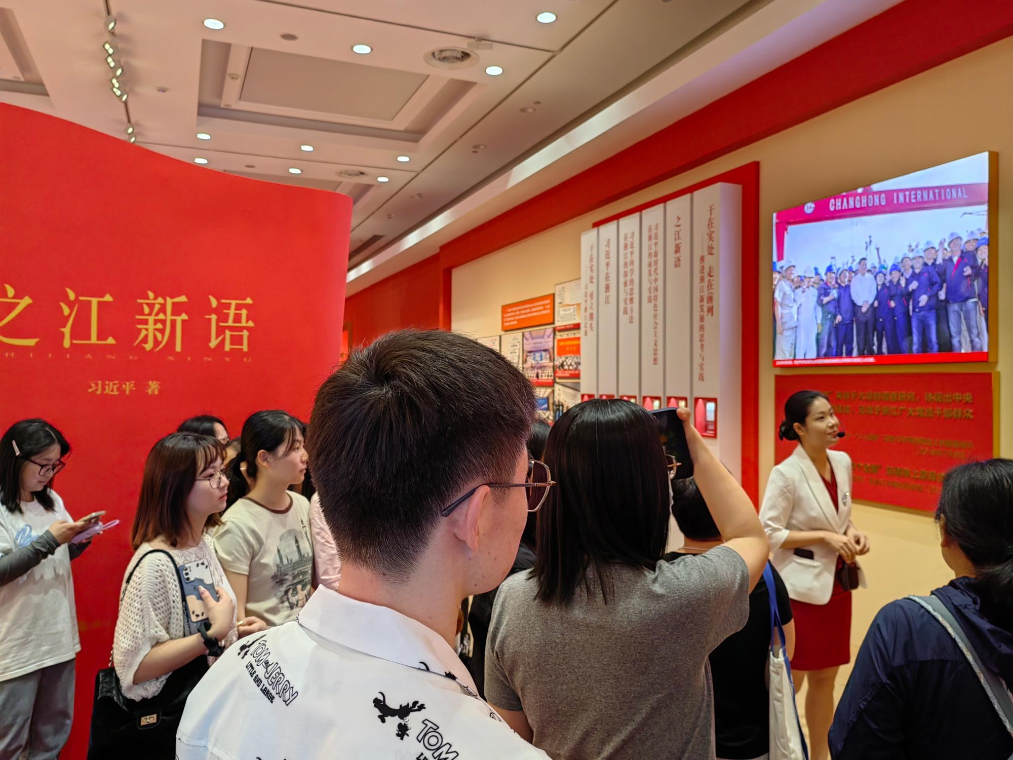 有同学在结束观展后感悟道:这是一副宏伟的历史画卷,是习近平新时代中国特色社会主义思想在浙江的伟大实践,作为青年学子,我们在学习专业知识的同时,更应实干争先,勇担新的历史使命,积极投身中国式现代化建设,为实现“中国梦”不懈奋斗。