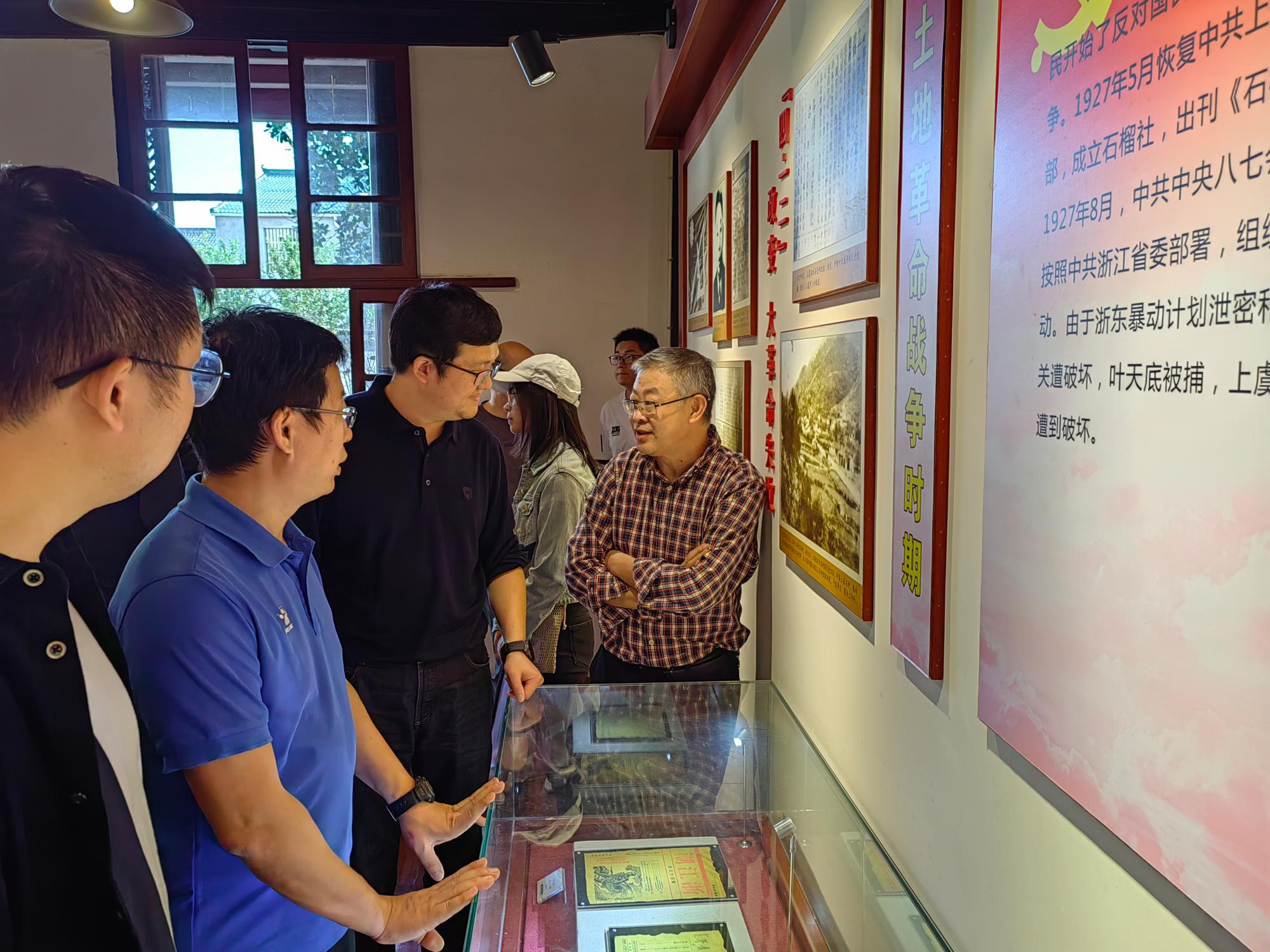 在绍兴市上虞区丰惠镇钱家弄23号大院浙东新四军北撤会议旧址,党员们重温红色党史,研读“新四军浙东游击纵队”历经千辛万苦打出“新四军”番号的故事,看着会堂旧址里的桌椅,“浙东区党委扩大会议”的故事也历历在目,当年会议做出的正确决议孕育了“新四军”茁壮成长。